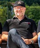 Gitarrist und meist Lead Sänger der Band, führt er professionell unsere Zuhörer durch den Abend.